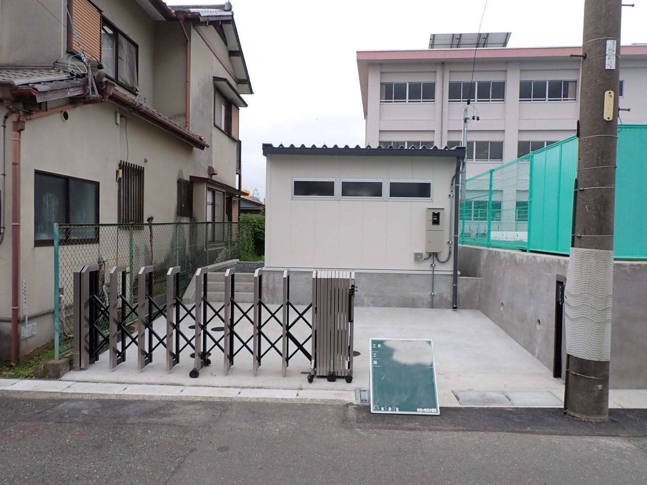 既存の建物は道路に面していた為、ポンプの点検等作業を行う時、業者の自動車を駐車するスペースが